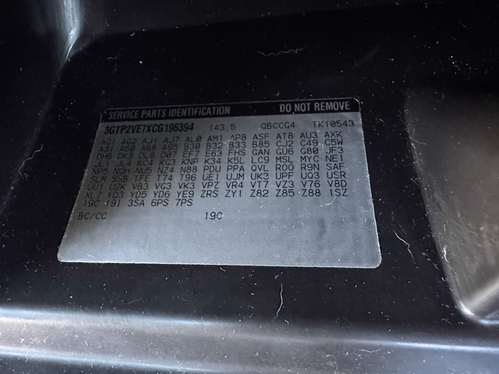 | VIN #: | 3GTP2VE7XCG196394 |